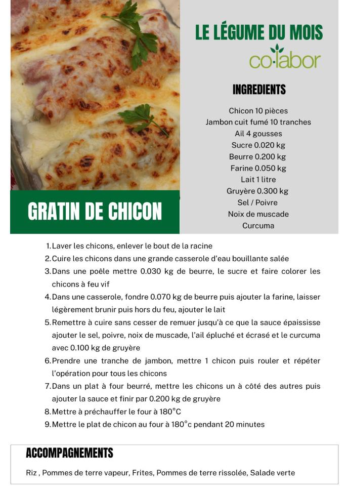 C'est le moment de mettre à l'honneur ce légume à la fois croquant et plein de bienfaits ! L'endive, riche en fibres, vitamines et minéraux, est parfaite pour accompagner vos plats, en salade, en gratin ou même en soupe. Découvrez la recette du gratin présentée par les équipes de co-labor BISTRO !