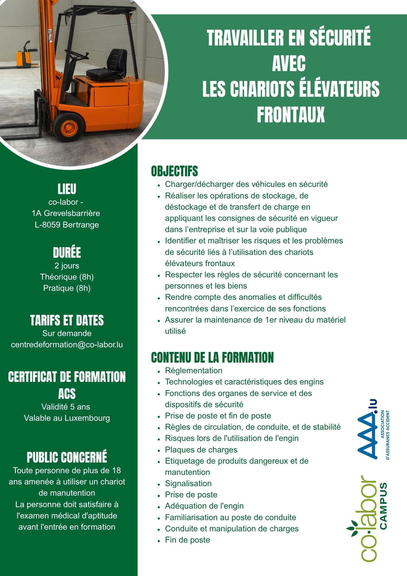 Manipulation en sécurité de chariot élévateur lors d’activités non forestières telles des travaux de construction, de charpente conduit et manipulation du charge familiarisation au poste conduit.